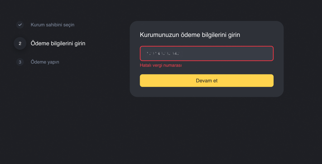 Rusya vergi numarasını girin. Diğer ülkelerin vergi numaraları kabul edilmiyor.